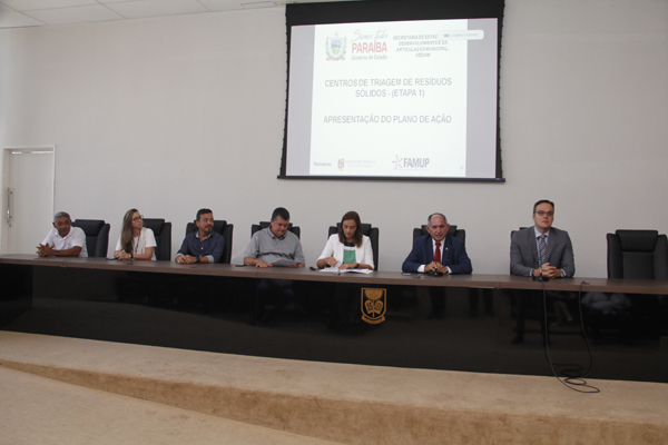 A reunião foi aberta pelo procurador de Justiça Francisco Sagres. Também compuseram a mesa de trabalho, o coordenador do Centro de Apoio Operacional às Promotorias de Justiça de Defesa do Meio Ambiente, Consumidor e Saúde, o promotor de Justiça Raniere Dantas; a secretária de Articulação Municipal do Estado, Ana Claúdia Vital do Rego; o presidente da Famup, Fábio Coelho; o secretário executivo do Empreender Paraíba, Fabrício Feitosa; a engenheira civil da Superintendência do Meio Ambiente (Sudema), Carolina Queiroz e o presidente da Cooperativa de Catadores de Itabaiana, José Marques de Souza.
