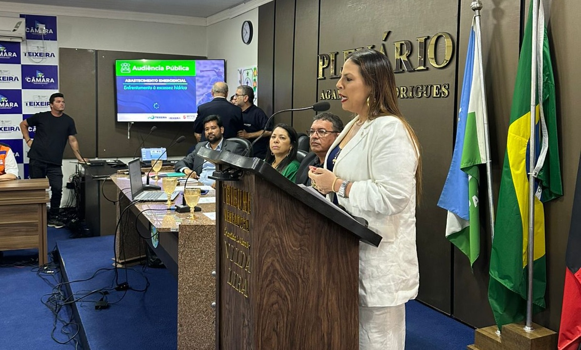 A audiência pública lotou o plenário da Câmara de Teixeira e contou com a presença dos presidentes e superintendentes da Companhia de Água e Esgotos da Paraíba (Cagepa), do Departamento Nacional de Obras Contra as Secas (Dnocs), da Agência Executiva de Gestão das Águas (Aesa), da Defesa Civil do Estado, da Companhia Pernambucana de Saneamento (Compesa), e de gestores da Prefeitura Municipal de Teixeira.