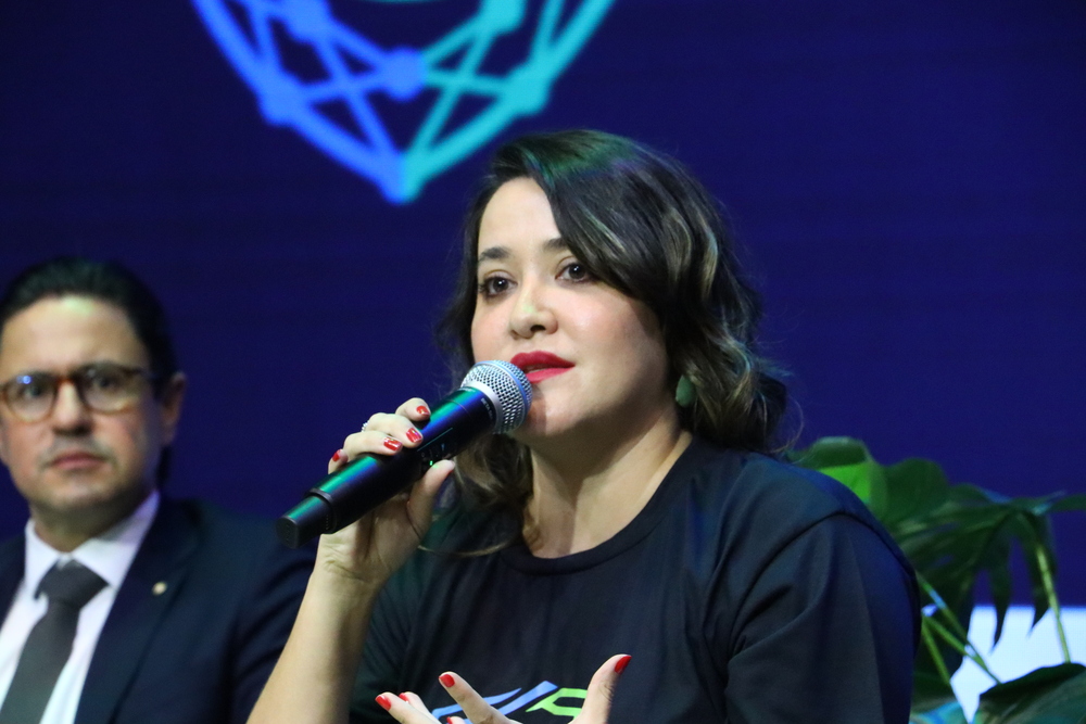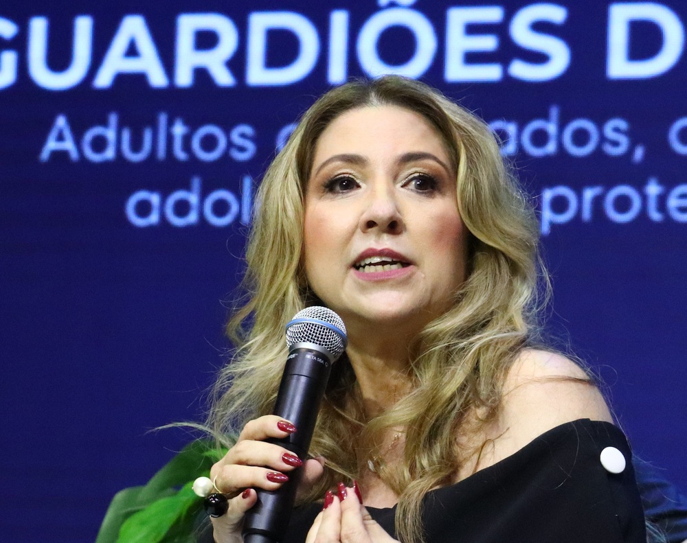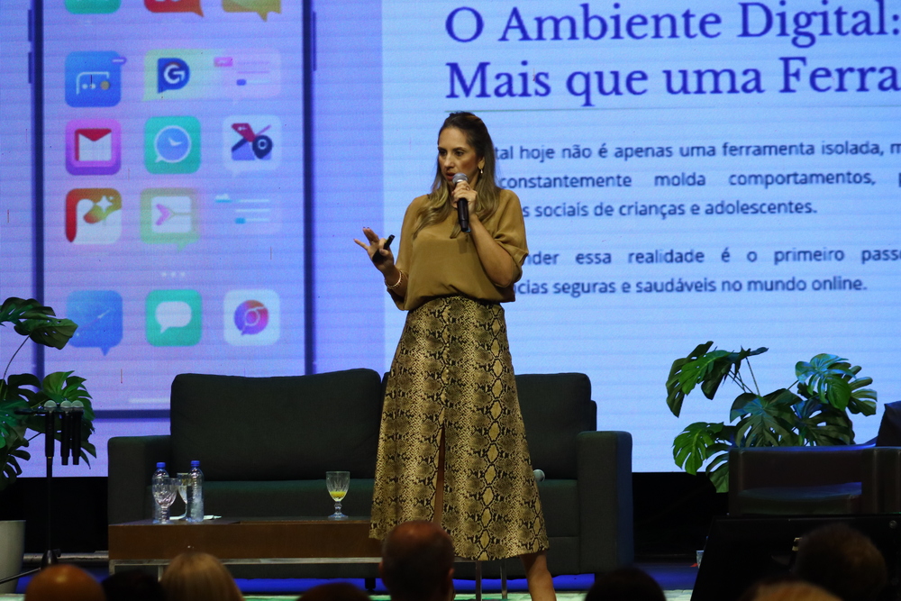 A primeira-dama do Estado, Camila Mariz Ribeiro, falou sobre a importância de pais, mães e responsáveis aprenderem a lidar com o mundo digital. “Antes de tudo sou mãe e tenho essa preocupação todos os dias dentro da minha casa. Se a gente não tiver atenção, a criança e o adolescente se tornam uma presa fácil, uma pessoa vulnerável em um ambiente que é completamente novo, inclusive pra nós. Então estou aqui hoje com um desejo muito grande de aprender e me conectar com as ideias de vocês e que seja uma porta e um avanço onde vamos poder trabalhar um acesso seguro das crianças e dos adolescentes”.