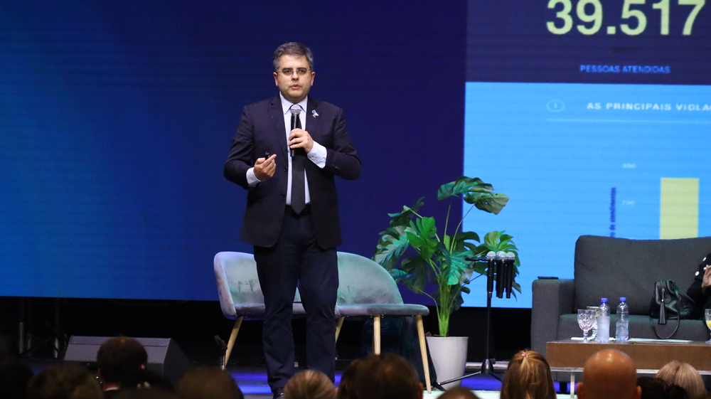 Em seguida, o advogado Davi Tavares fez um relato da experiência na Câmara dos Deputados no debate sobre a proteção de crianças e adolescentes no ambiente digital e sobre os danos sofridos por vítimas de abusos na internet. Ele destacou que os traumas são gerados por toda a vida e que, por isso, é necessário falar sobre proteção e responsabilidade, sobre ter cuidado com os filhos, com o que os equipamentos digitais, como celulares e tablets, estão transmitindo.