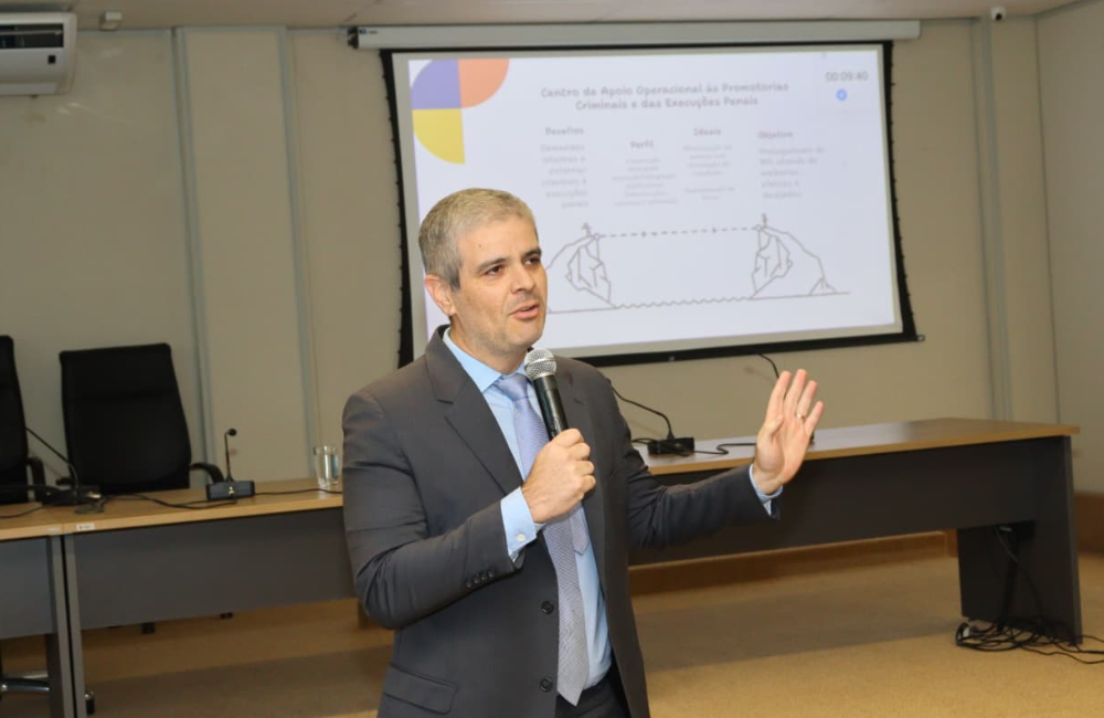 O promotor Daniel Dal Pont falou sobre a atuação do Núcleo de Gestão do Conhecimento (NGC) e do Grupo de Atuação Especial Contra o Crime Organizado (Gaeco), ressaltando a atuação uniforme no combate às facções criminosas, que é uma das bandeiras da atual gestão. Ele também informou que será promovido o Curso Avançado de Inteligência Artificial Generativa, nos dias 3, 10 e 18 de novembro.