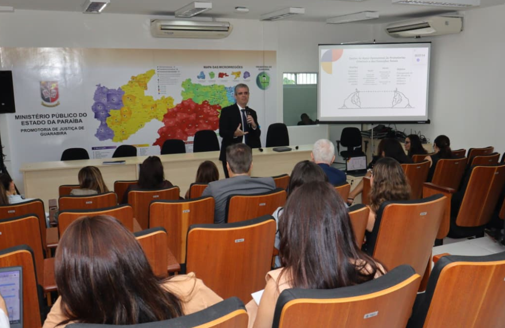 A 1ª Semana de Interação Institucional chegou à região do brejo paraibano nesta quinta-feira (23), último destino do “MPPB em Movimento” no interior do estado, antes do retorno a João Pessoa. A Promotoria de Justiça de Guarabira, uma das cinco microrregiões estratégicas, recebeu a visita da administração do Ministério Público e dos coordenadores de Centros de Apoio Operacional (CAOs). Foi uma tarde de apresentação de ideias para auxiliar os promotores e promotoras e escuta das necessidades e dificuldades enfrentadas por eles no trabalho diário.