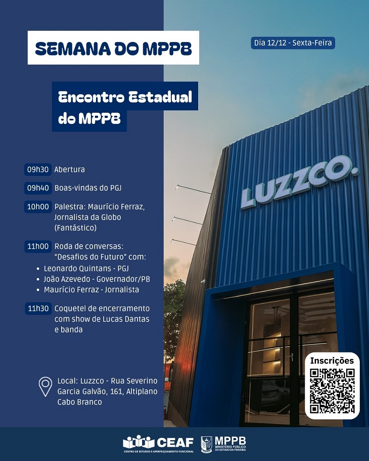 Os membros e membras do MPPB podem se inscrever pelo link: