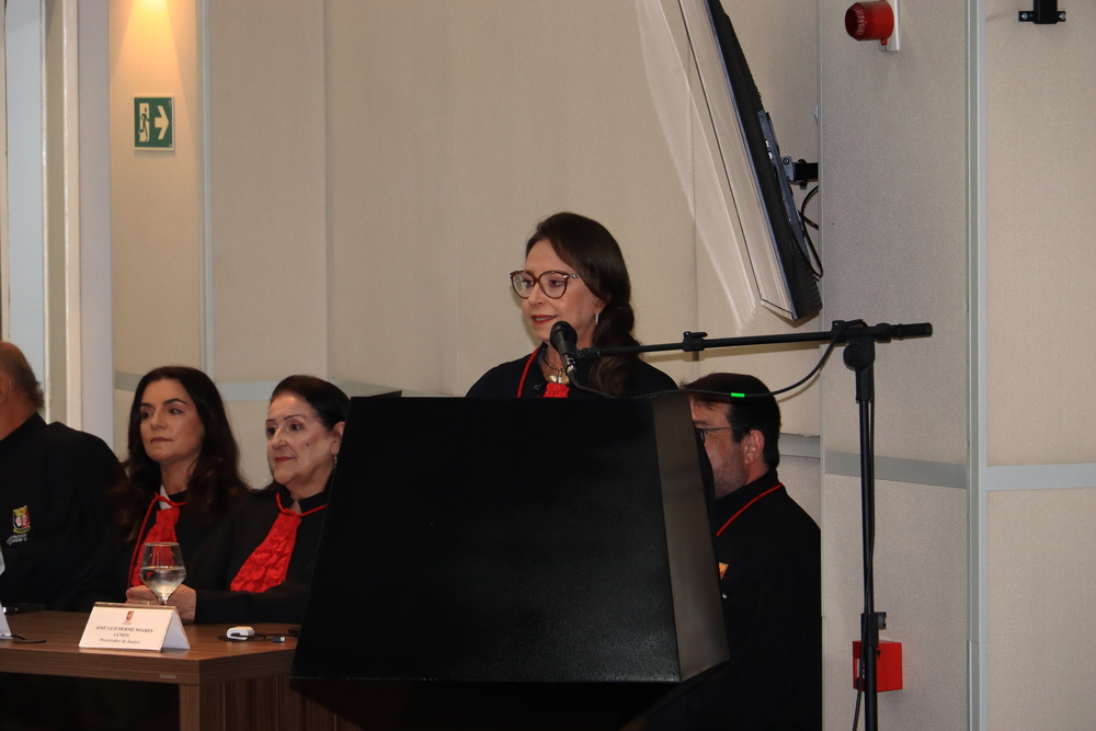 A advogada também realçou a postura institucional da nova procuradora. “Ela é firme sem ser inflexível, é técnica sem perder a sensibilidade e é rigorosa com seus princípios. E aquilo que mais me toca é que ela, doutora Salete, é profundamente humana com todas as pessoas. Se sua estatura física pode parecer pequena aos nossos olhos, sua grandeza moral e sua força interior são gigantes. Hoje, ela chega ao cargo de procuradora de justiça pelo critério de antiguidade. E aqui cabe uma reflexão que a própria trajetória ensina porque, por merecimento, muitos já reconheciam há muito tempo que esse lugar já lhe pertencia. Mas o tempo, esse mestre silencioso, também cumpre o seu papel. Por vezes, o tempo não chega para atrasar a justiça. Ele chega para amadurecer os caminhos, confirmar as escolhas e tornar conquistas ainda mais significativas. O tempo, neste caso, não lhe retirou nada. Ao contrário, o tempo a engrandeceu, a amadureceu e hoje entrega o Ministério Público ainda mais preparada e ainda mais feliz para ocupar este lugar. E assim, uma serenidade que sempre marcou sua caminhada.Hoje, ao vê-la tomar posse como procuradora de justiça, tenho a certeza de que essa conquista não é apenas um coroamento de uma carreira. É uma confirmação de um vinte inteira dedicada ao serviço público, com dignidade, responsabilidade e amor à justiça”, disse.
